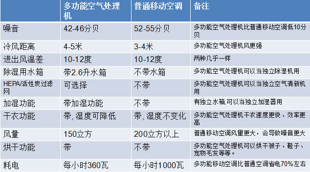 多功能空氣處理機與普通移動空調(diào)對比: