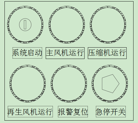 11.調試合格后,系統需持續運行≥8 個小時,然后關機(如圖 6 所示,依次關閉下列按鈕):再生風機運行 → 壓縮機運行 → 主風機運行